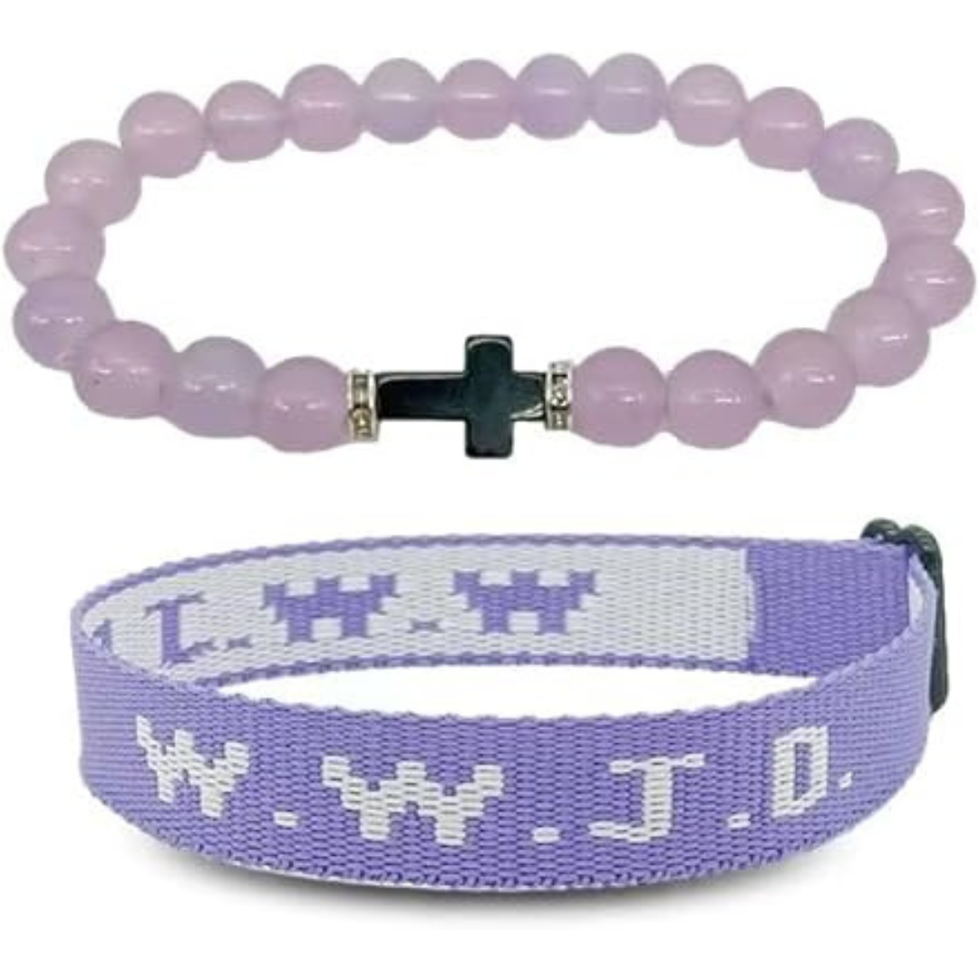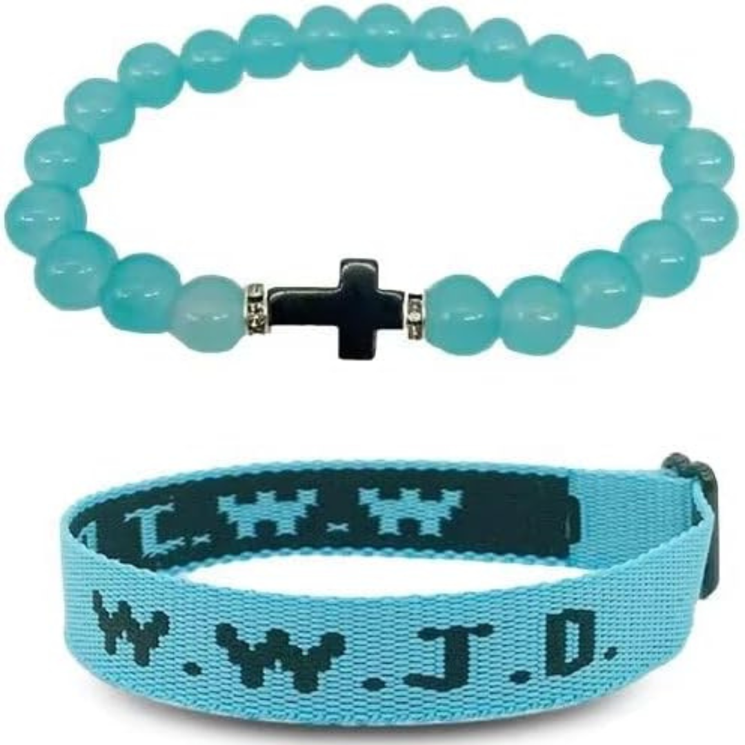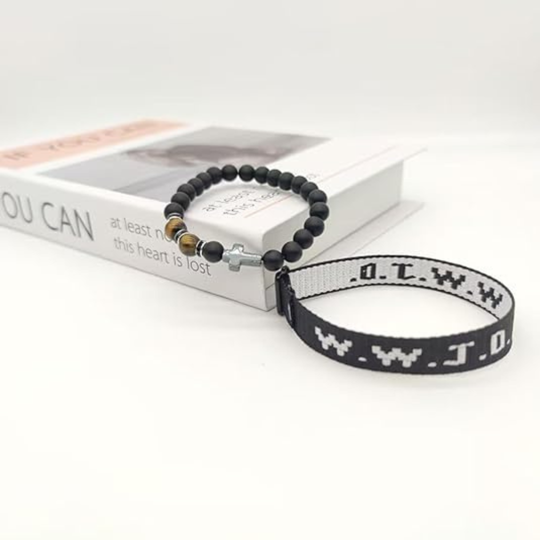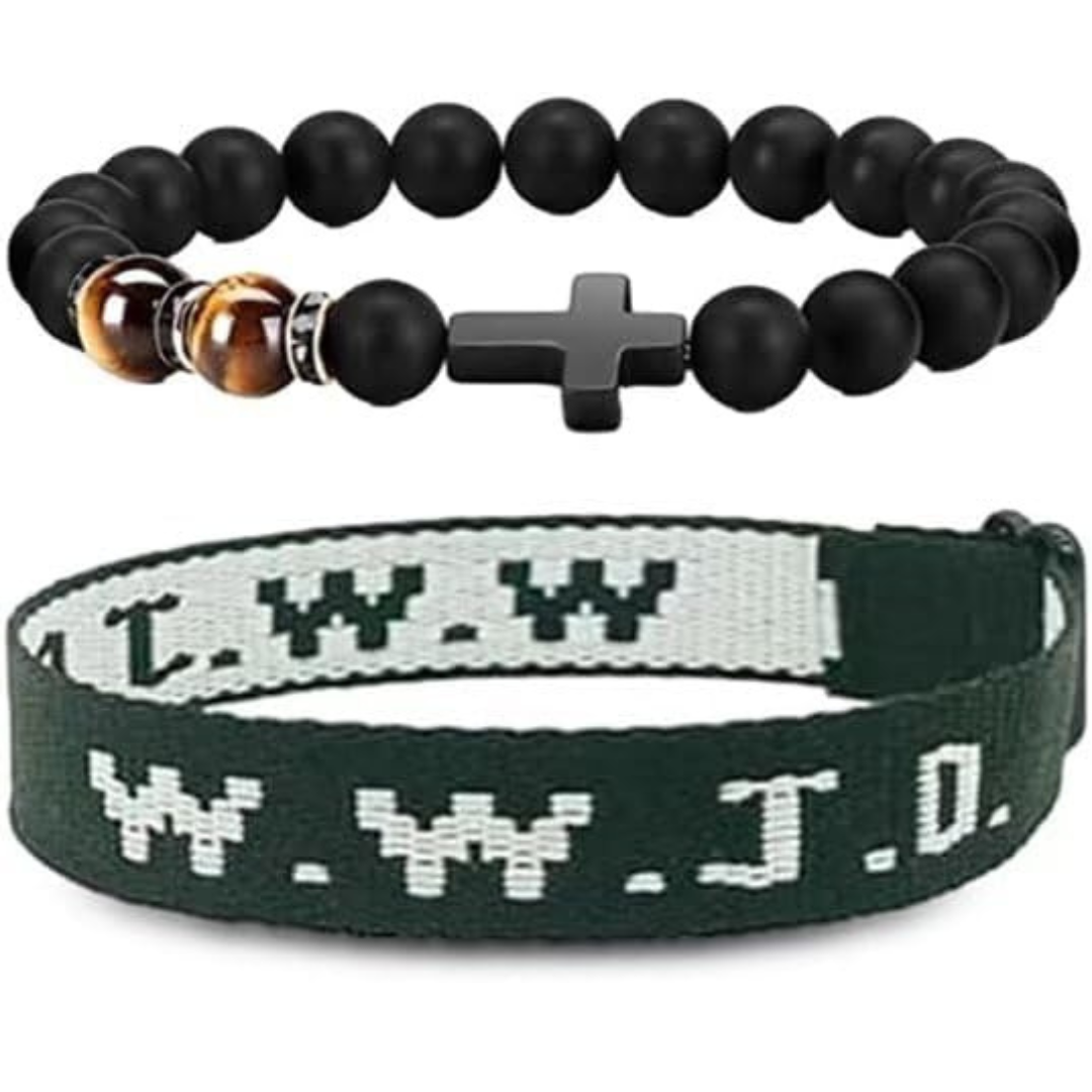 These bracelets feature the iconic WWJD (What Would Jesus Do) design, plus an additional style with a cross, serving as a daily reminder of faith and devotion.