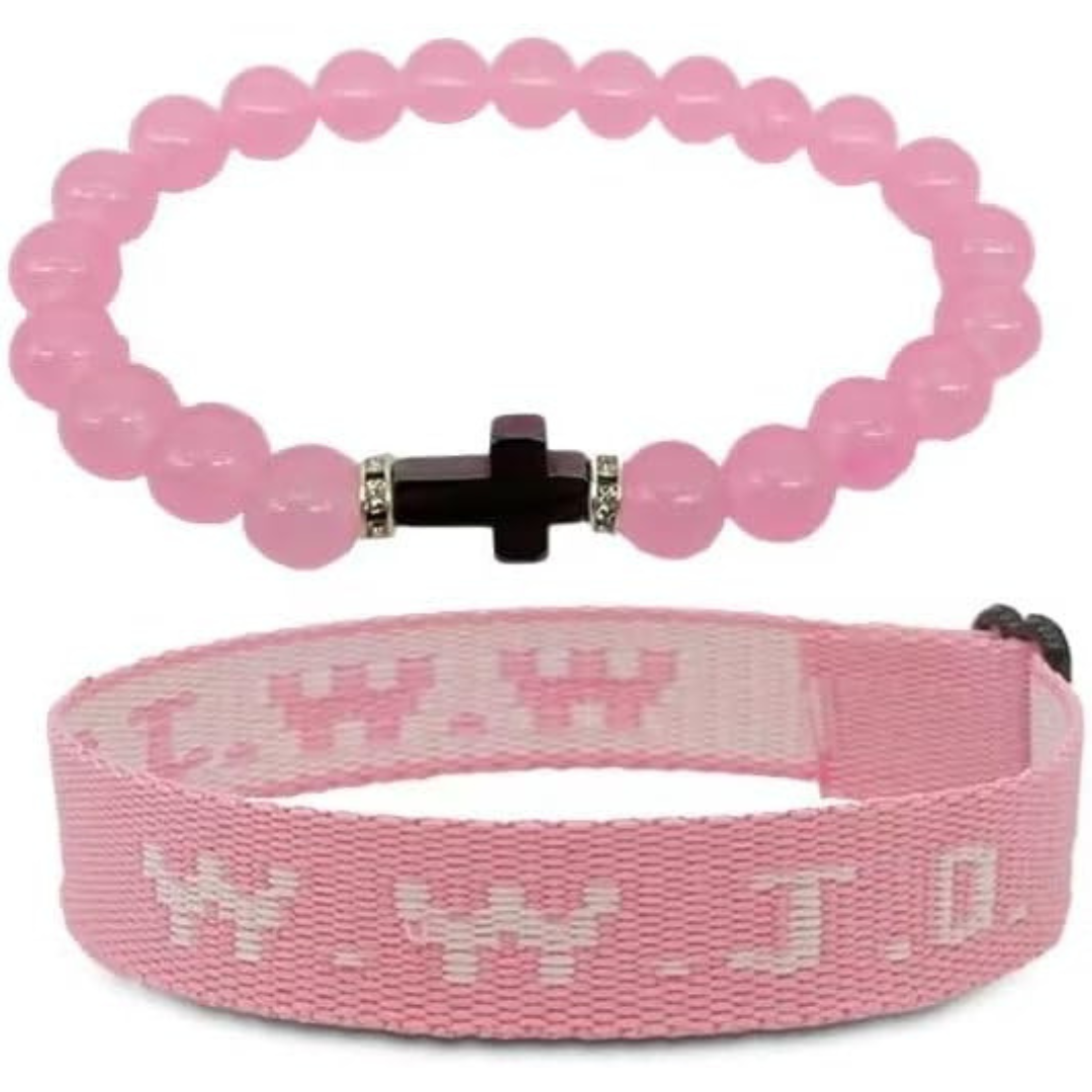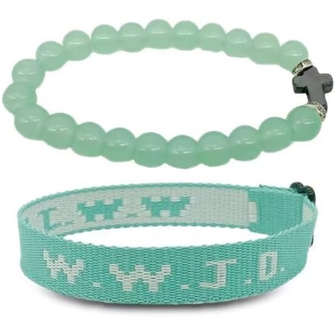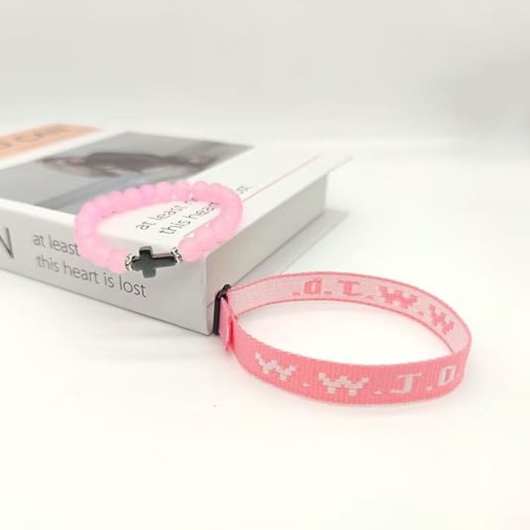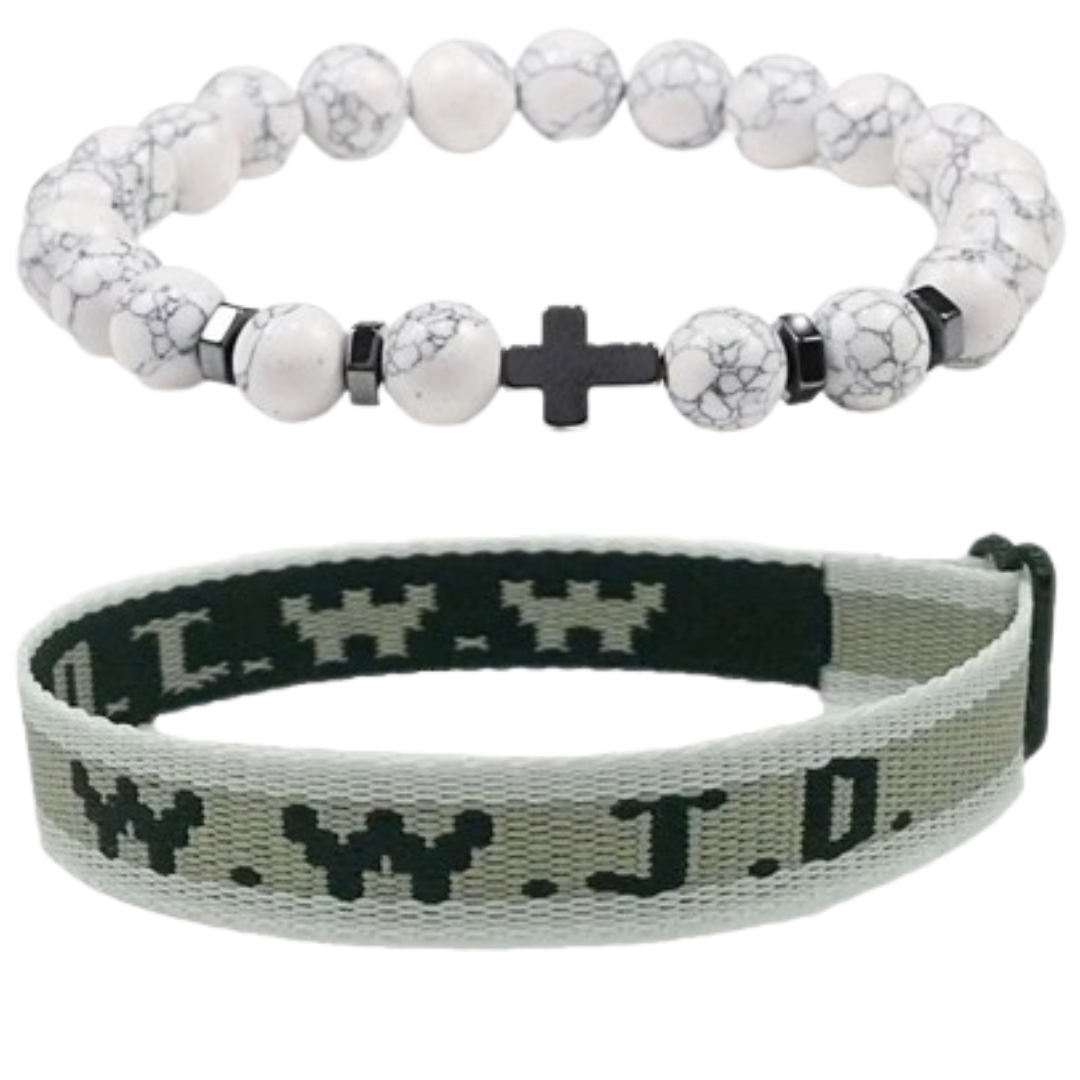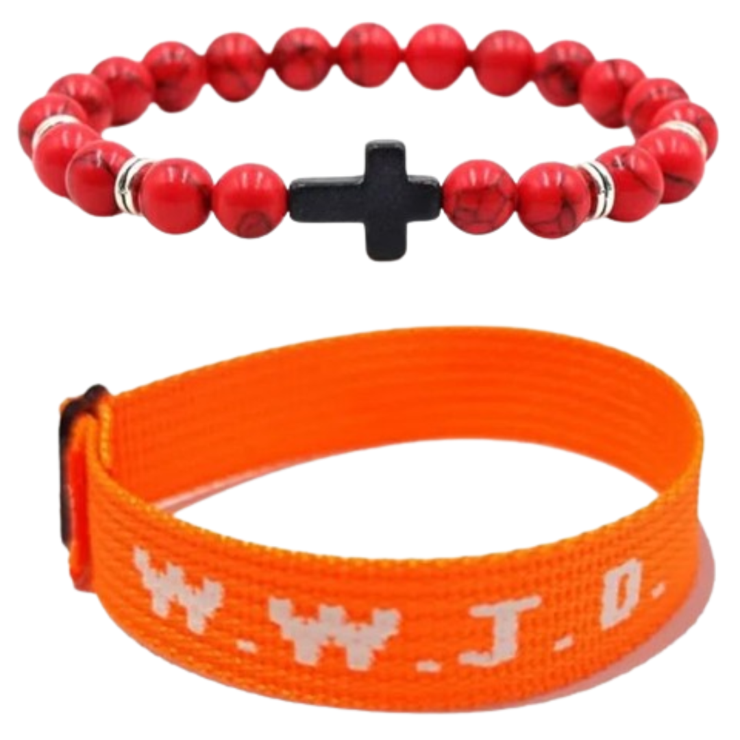 These bracelets feature the iconic WWJD (What Would Jesus Do) design, plus an additional style with a cross, serving as a daily reminder of faith and devotion.